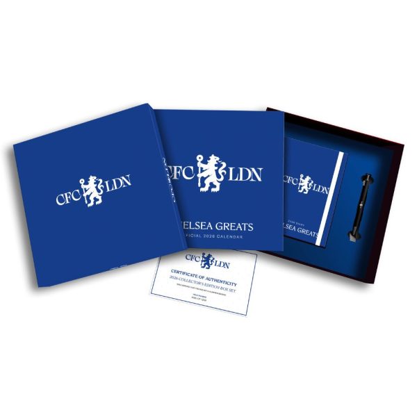This beautiful collector’s gift box set is the perfect present for any fans. It includes an official 2026 square calendar, an A5 2026 diary and a pen, all beautifully presented in a gold foil-finished box. Plus when you lift the lid, Chelsea’s renowned anthem plays to remind you of all the times you have sung along!