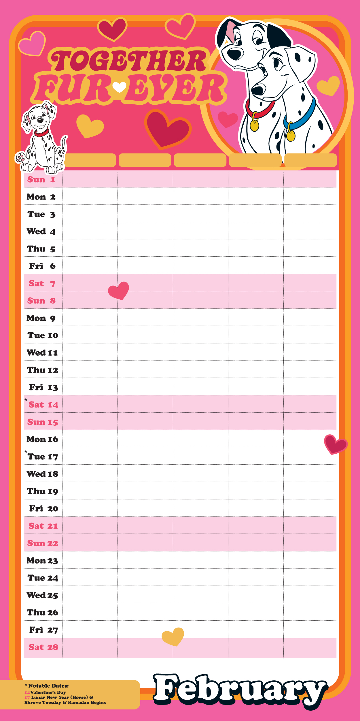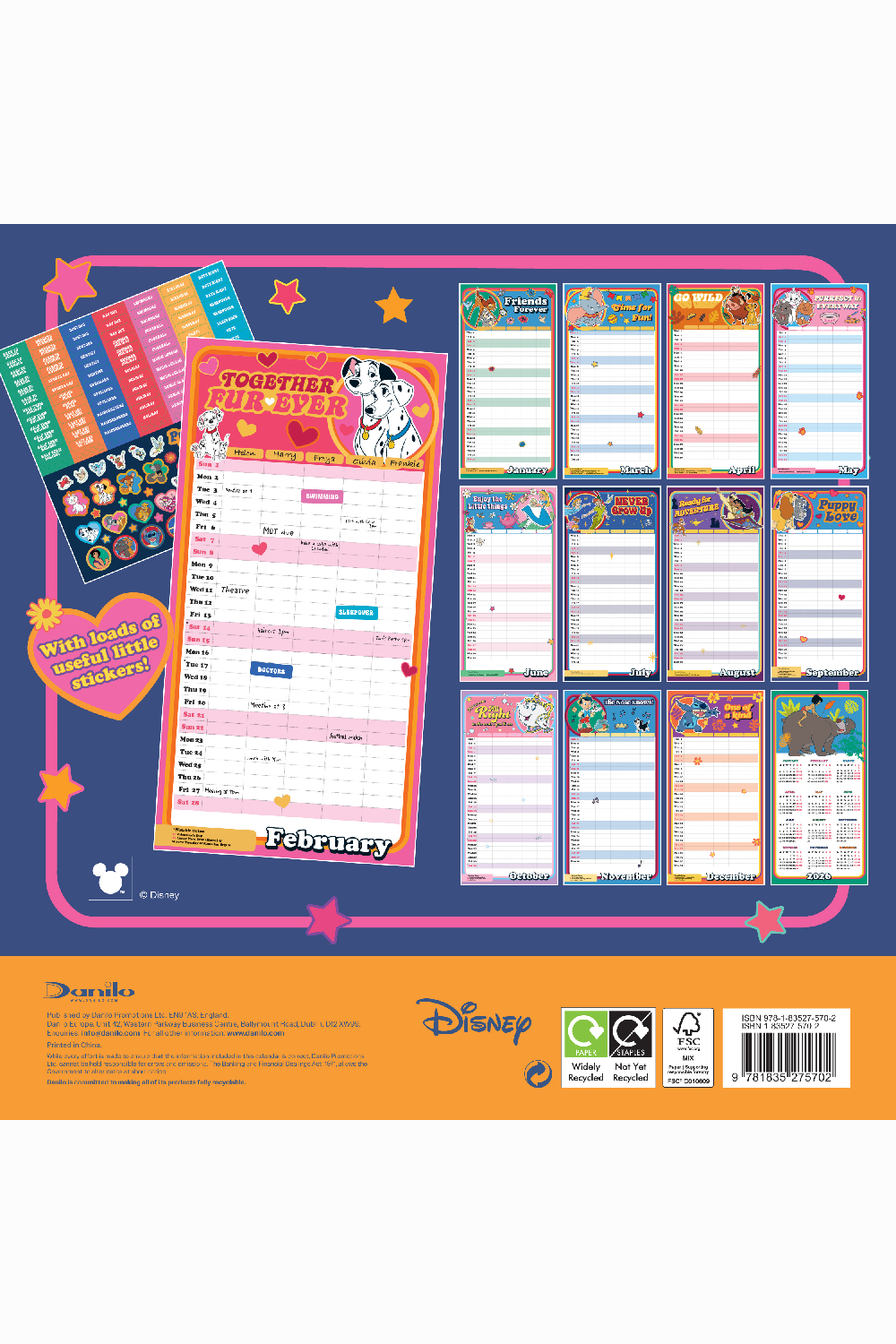 Keep your family organised with the Disney Classics Family Organiser Calendar, combining practicality and charm. With five spacious columns for easy planning, everyone can note their activities while enjoying a touch of Disney magic. It includes fun stickers to help, make organisation enjoyable. Printed on premium-quality paper and officially licensed, this calendar is a delightful addition to any family’s routine.