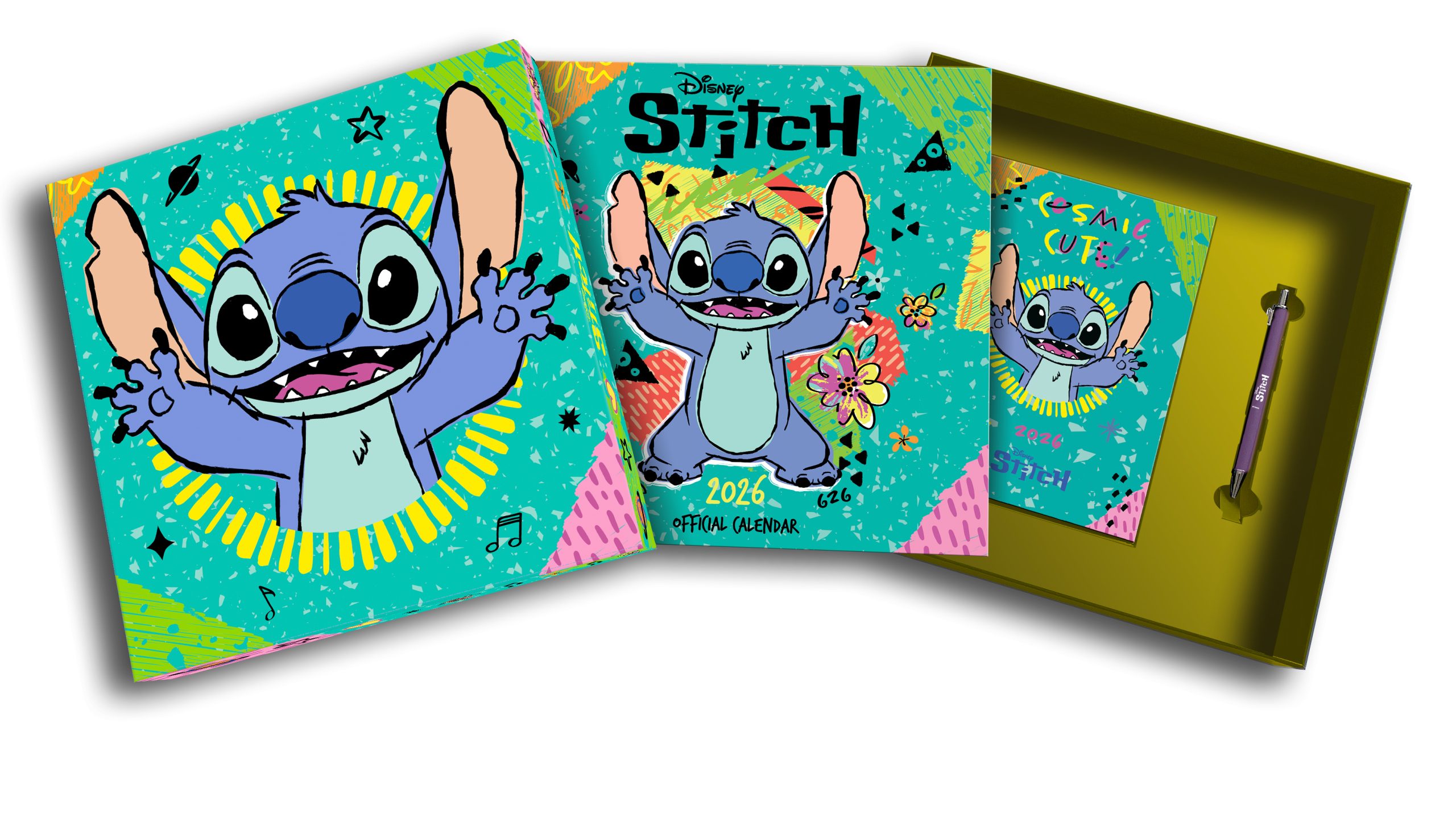 This exclusive gift box set is the ultimate treat for Stitch fans. The set includes an official 2026 calendar, a matching A5 diary, and a branded pen, all beautifully packaged for the ultimate fan experience. Officially licensed and printed on premium-quality paper.