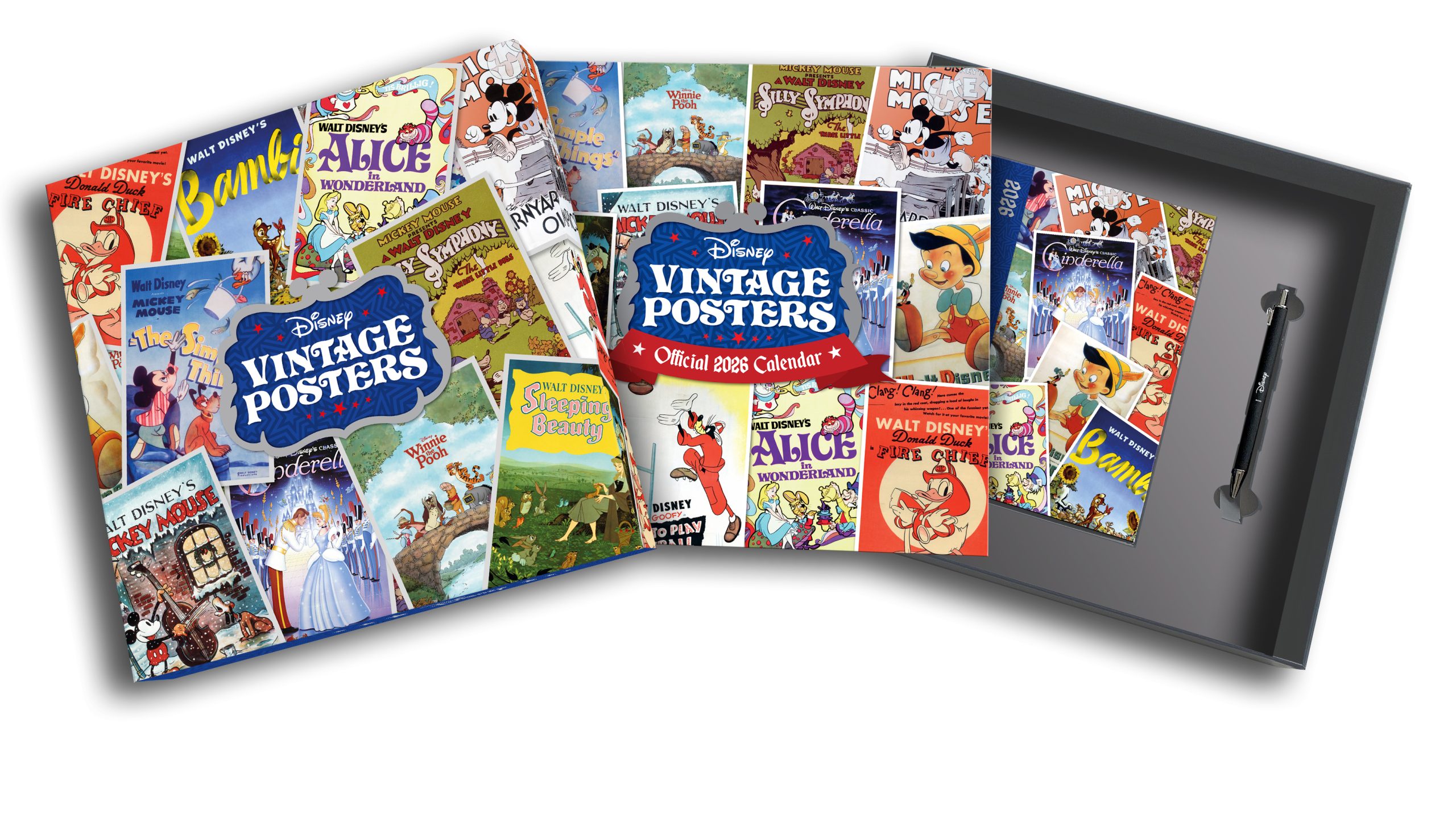 This exclusive gift box set is the ultimate treat for Disney Vintage Posters fans. The set includes an official 2026 square calendar, a matching A5 diary, and a branded pen, all beautifully packaged for the ultimate fan experience. Officially licensed and printed on premium-quality paper.