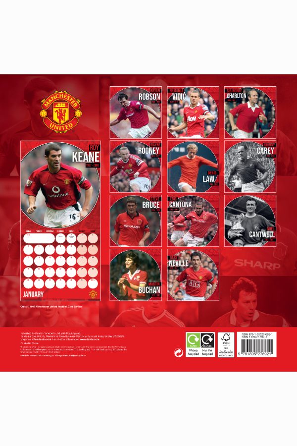 Enjoy a year of Manchester United FC Legends with this square format calendar. Each month features an image that captures the best of Manchester United FC , along with spacious date panels for appointments and reminders. Officially licensed and printed on premium-quality paper.