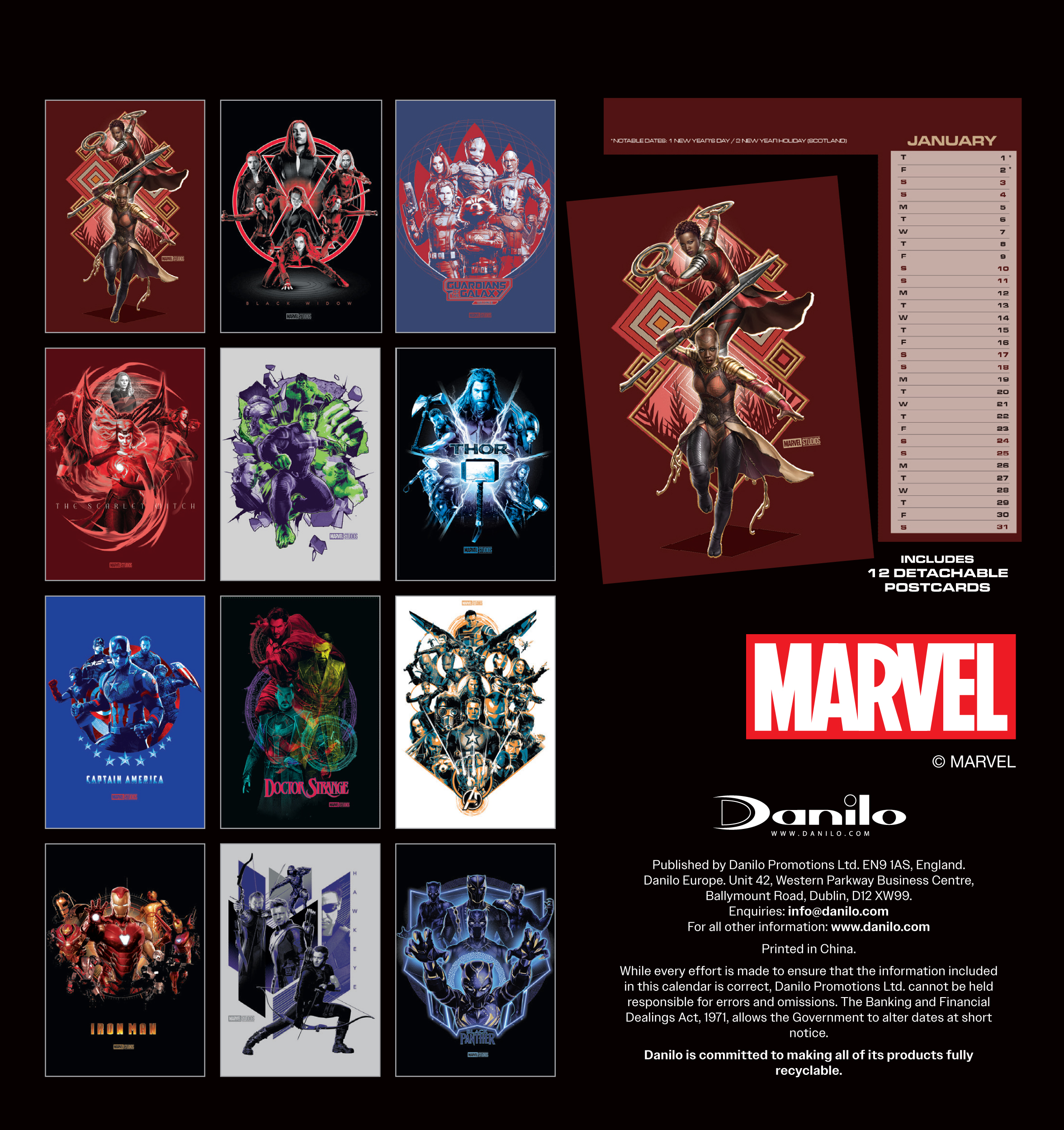 Elevate your workspace with the Marvel Desk Easel Calendar! This eye-catching calendar boasts a flip-through design, showcasing stunning, high-quality images of your favourite Marvel characters each month. Officially licensed and printed on premium paper, it’s perfect for Marvel fans looking to add a touch of superhero flair to their daily routine.