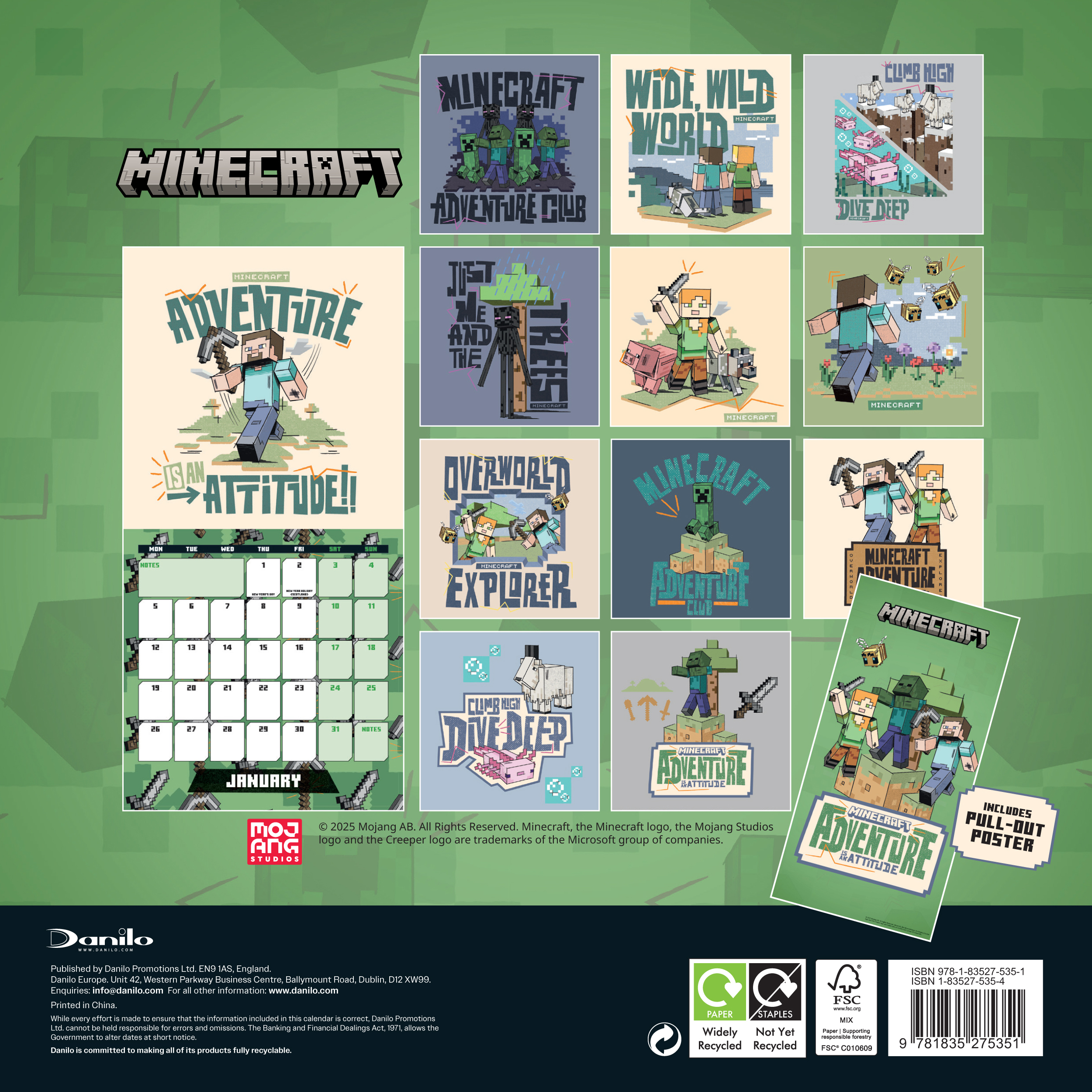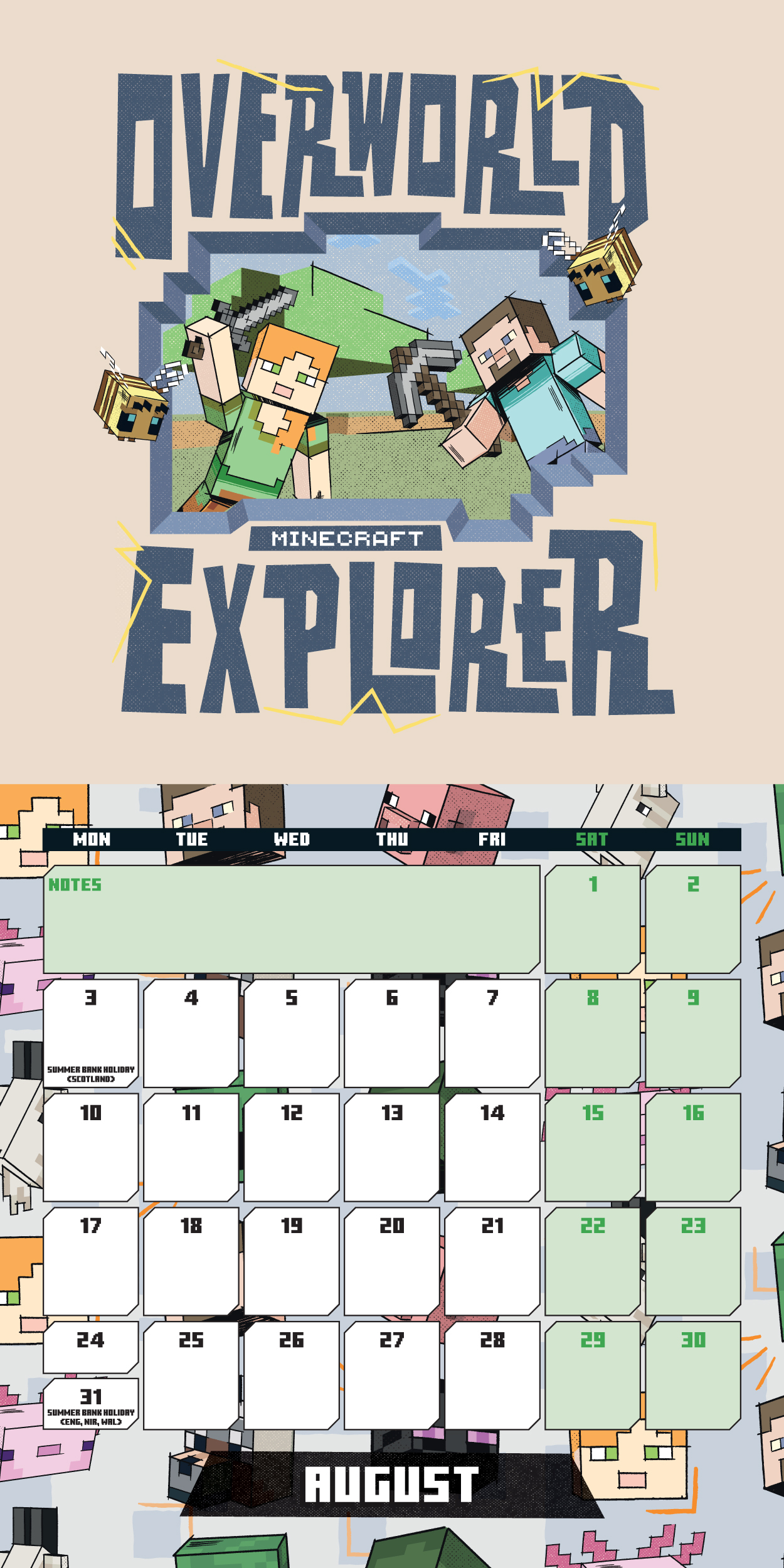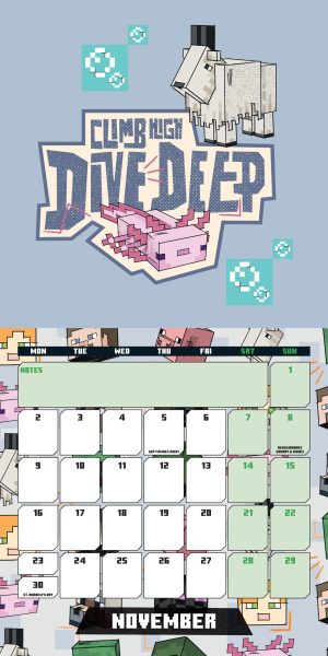The Minecraft Official Mini 2026 Calendar is the ideal calendar for limited wall spaces. There is a different Minecraft picture on each month and there is also space to write appointments or notes for the year ahead.