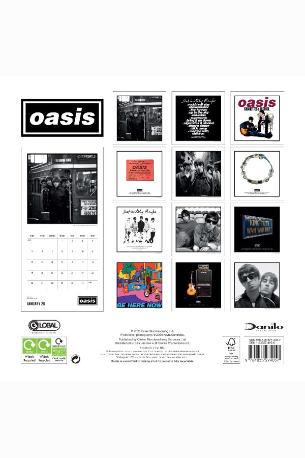 Enjoy a year of Oasis with this square format calendar, featuring images that fans will love. Each month features a classic image that captures the best of Oasis, along with spacious date panels for appointments and reminders. Officially licensed and printed on premium-quality paper- this is a must-have for any Oasis fan!