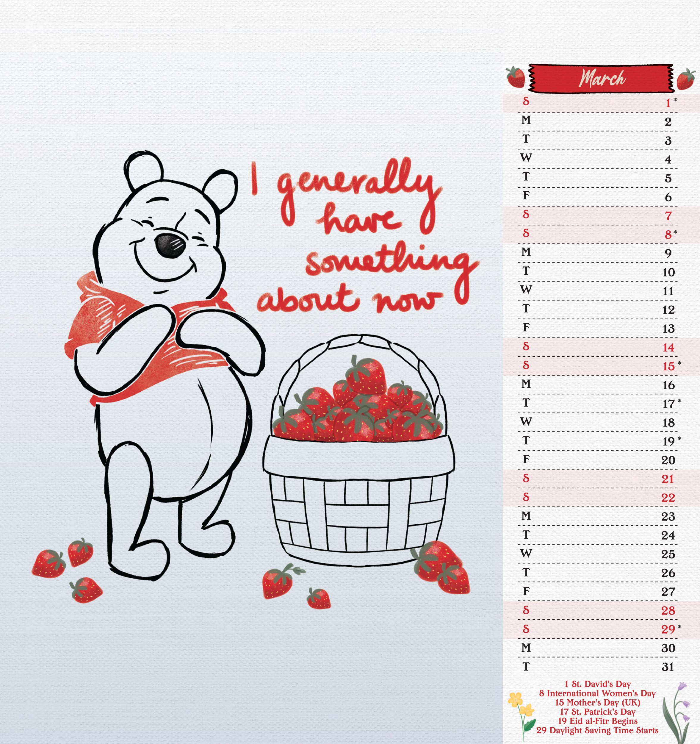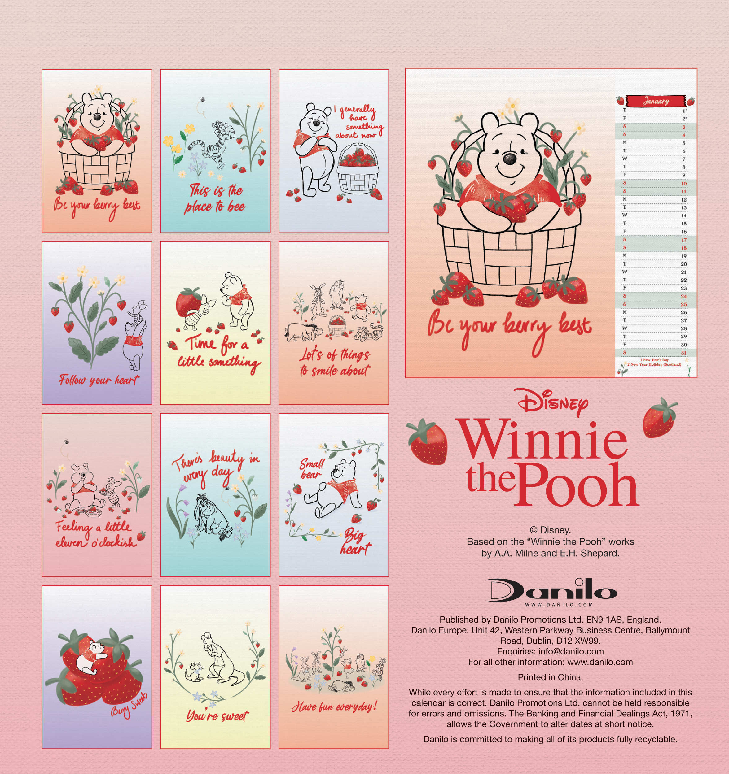 Make your desk stand out with this Winnie the Pooh desk easel calendar, featuring a flip-through design and high-quality imagery of your favourite characters: Winnie the Pooh, Tigger, Piglet, and Eeyore. Each month features a new, vibrant image that captures the best of Winnie the Pooh, along with date panels for appointments and reminders. Officially licensed and printed on premium-quality paper.